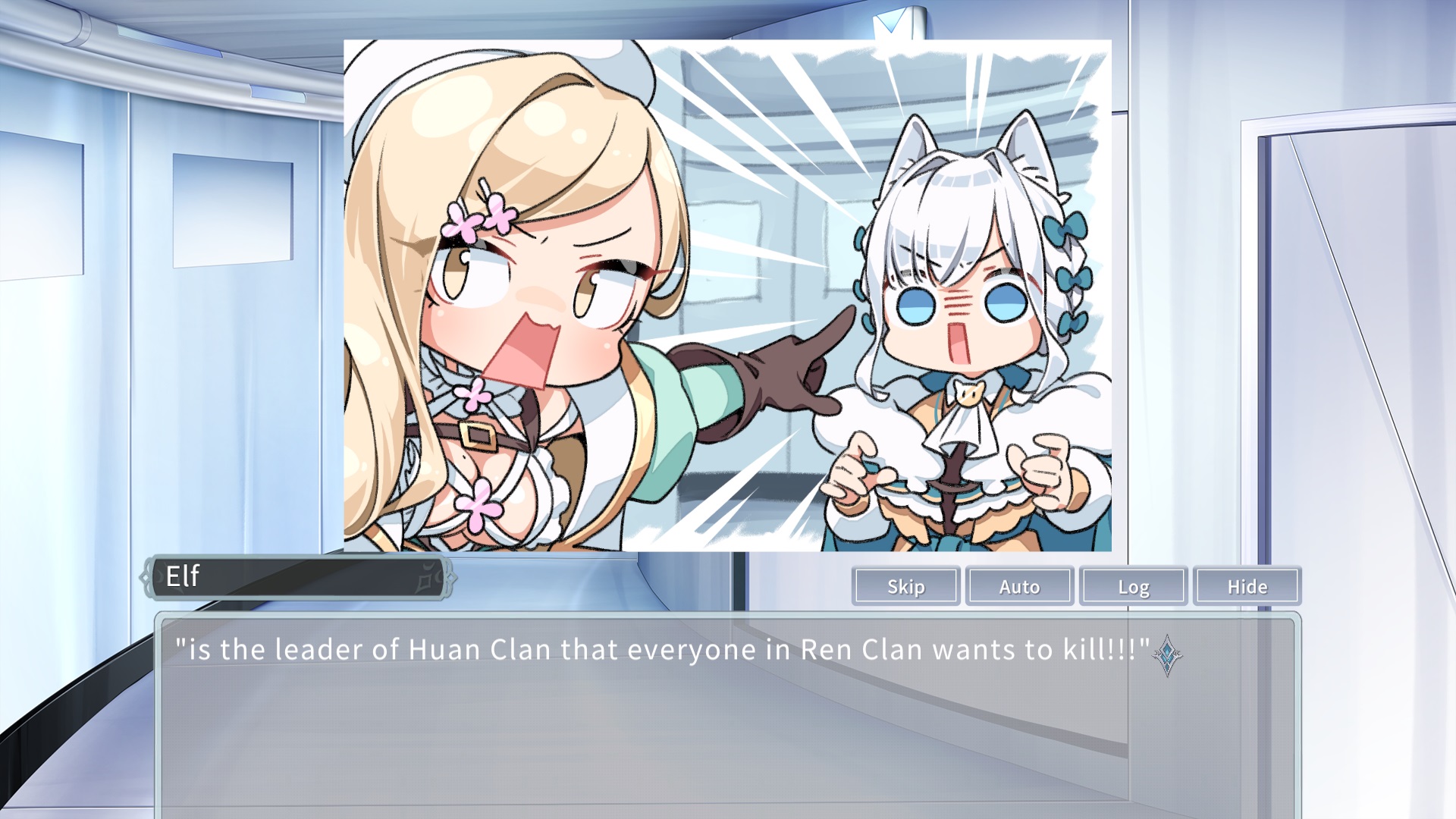 A being who calls herself Arya, claiming to be a goddess, divides the people in the laboratory into two factions: "Ren" and “Huan".